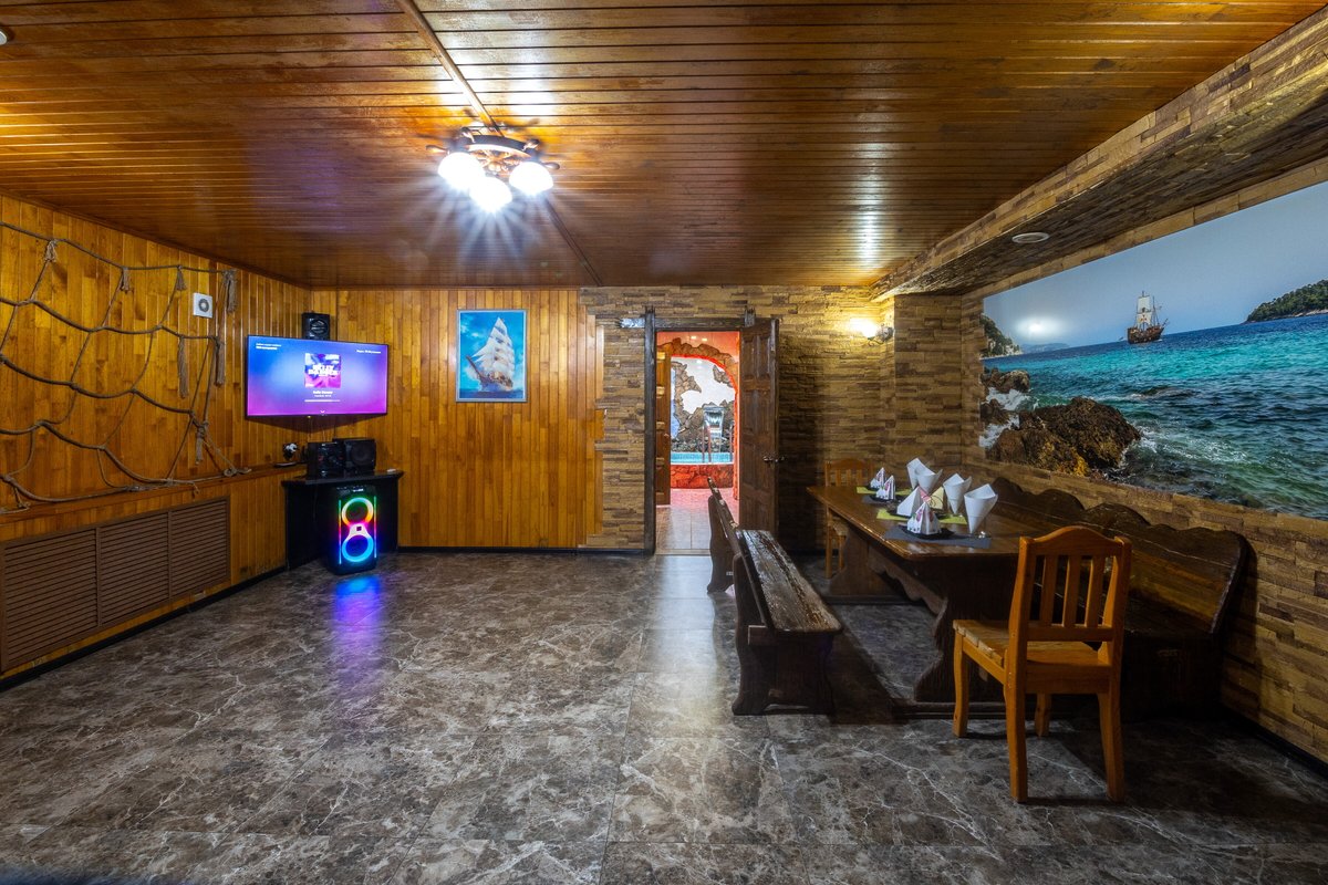Отличная сауна! Отдыхали семьей с детьми. Все чистенько. Телевизор, музыка, большой обеденный стол, бассейн, парилка, душ, танцпол. Место много. Дети от бассейна в восторге. Отличный персонал, вежливый, гостеприимный. Всё на высшем уровне!